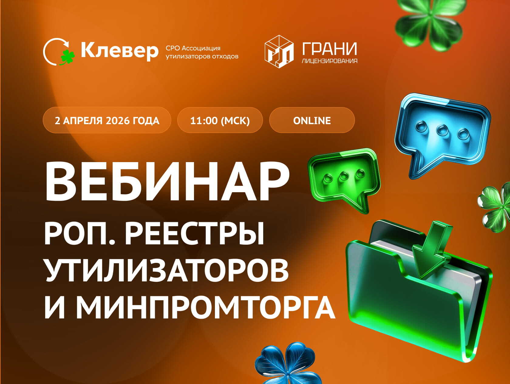 СРО Ассоциация утилизаторов отходов КЛЕВЕР совместно с партнерами проведет онлайн-вебинар «Расширенная ответственность производителей (РОП). Реестры утилизаторов и Минпромторга. Основные требования и «подводные камни»